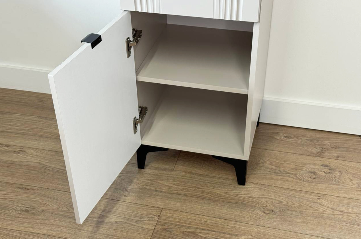 • Материалы: Корпус — ЛДСП (прочность, долговечность), фасад — МДФ с покрытием ПВХ (защита от повреждений, эстетика).