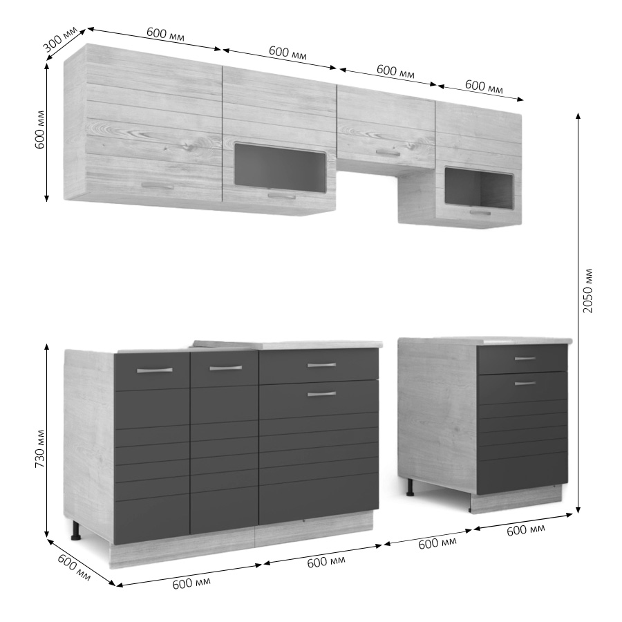 Кухня РУМБА №5/1 Ясень/Графит