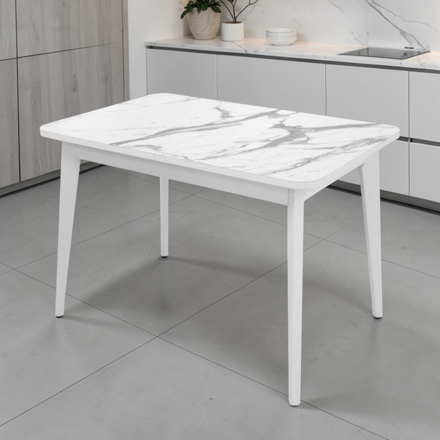 Стол Бриз-2 1100(390)*740 Пластик, 005 Венато (Мрамор белый), подстолье дерево,эмаль белая