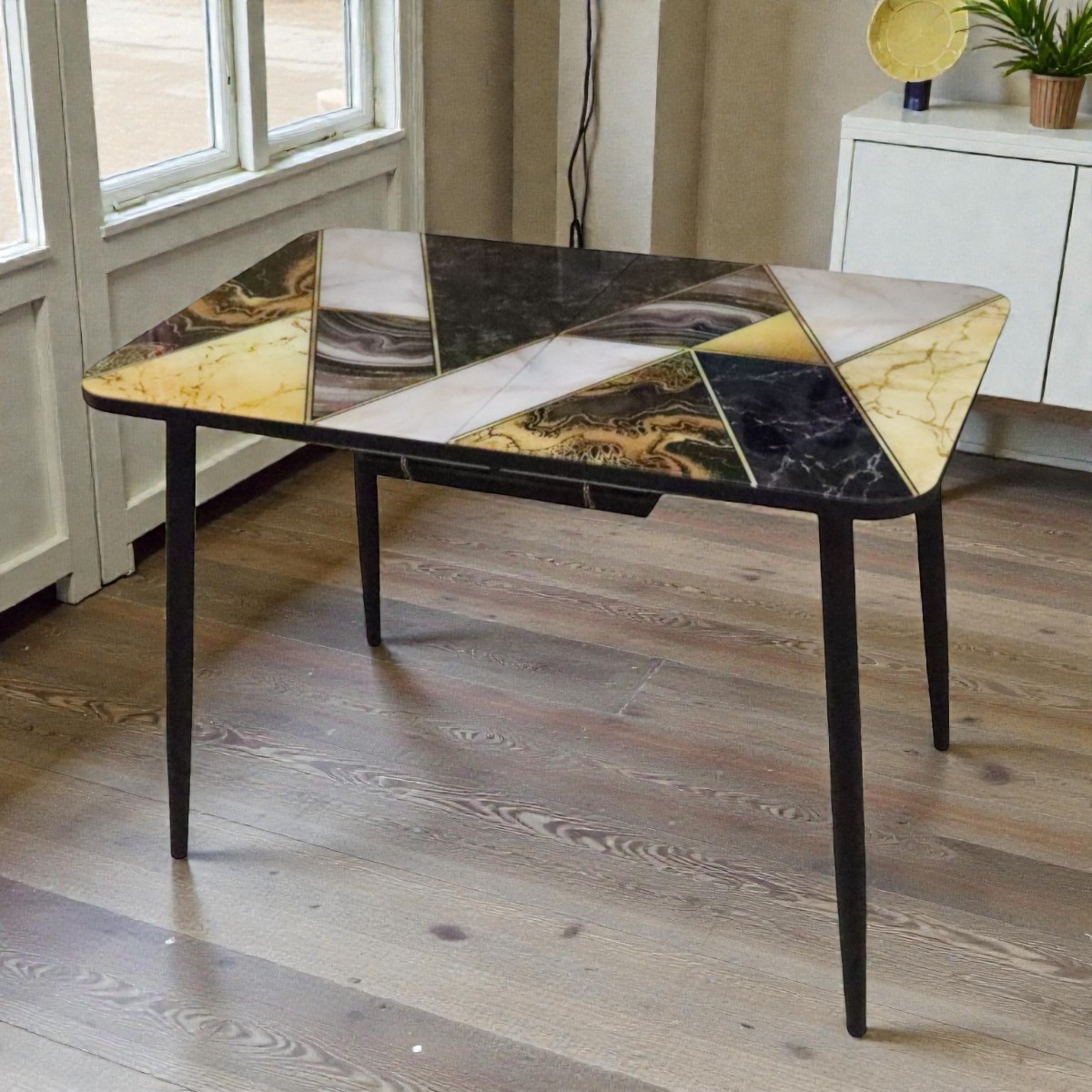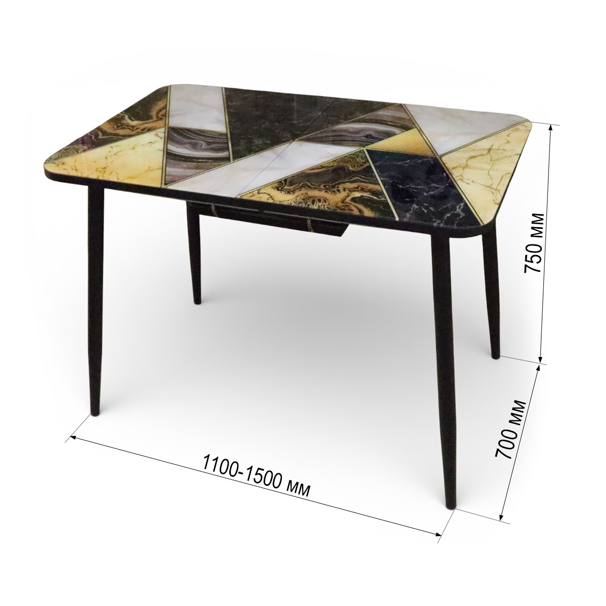 Стол кухонный Турин 110(+40)*70 Плита КР064/ черный