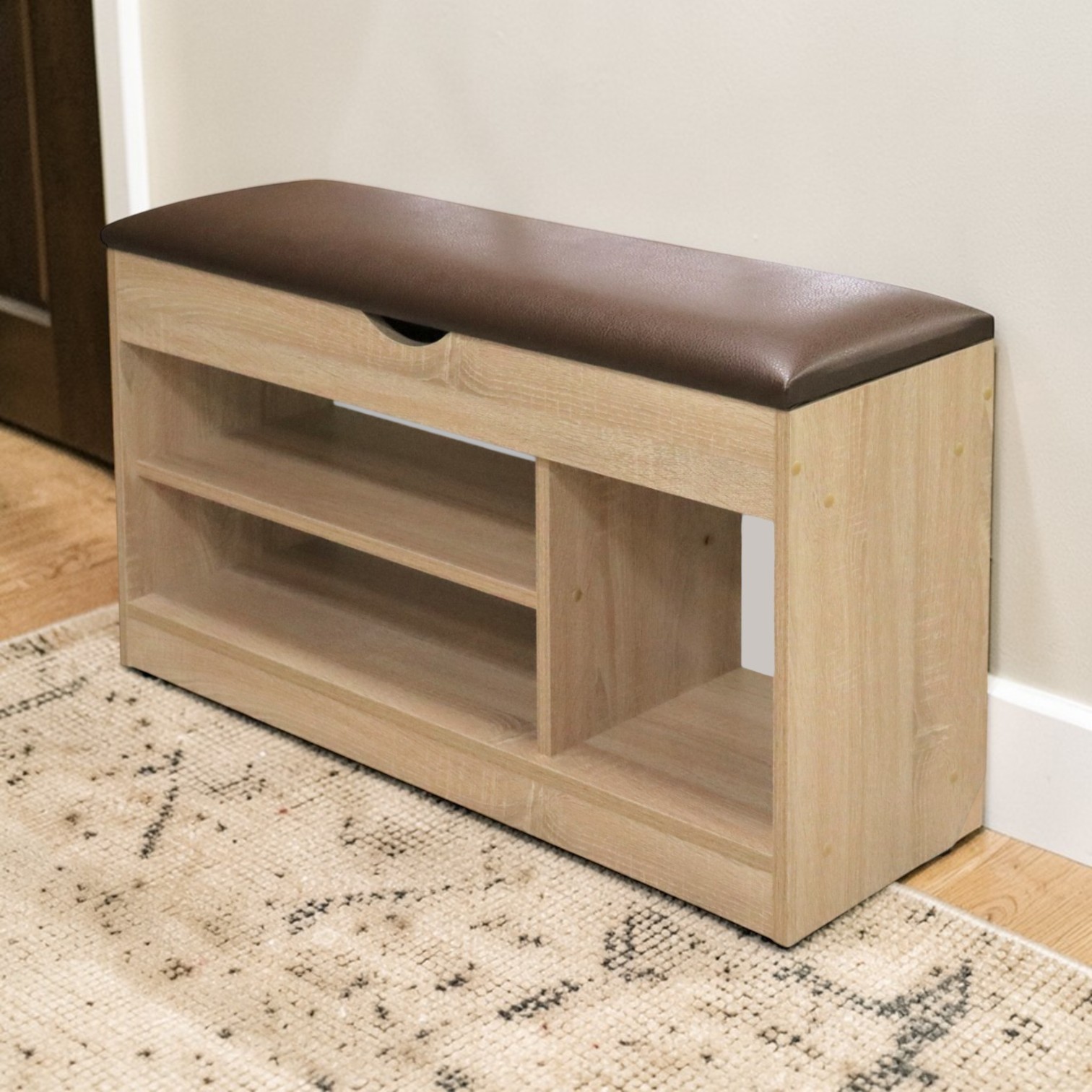 Тумба для обуви БН-196-04 (900*310*510) дуб сонома/кожзам 305-02 корич