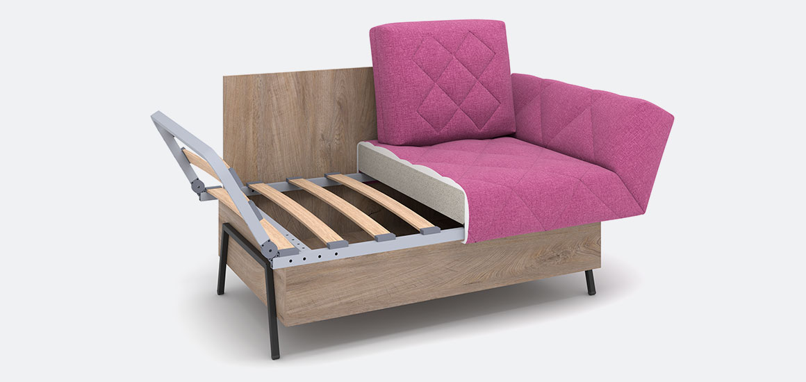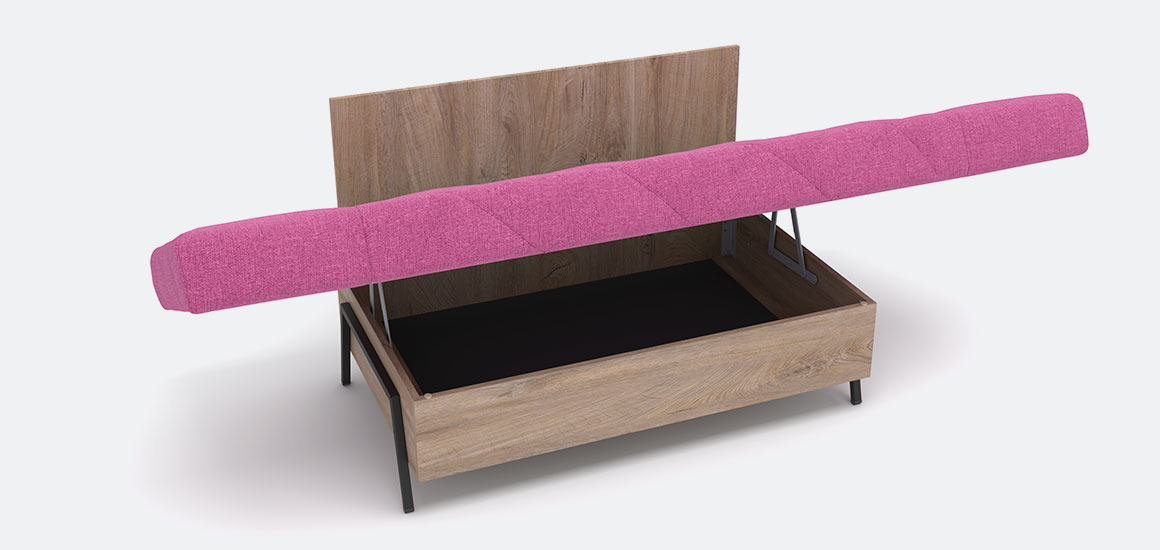 Джуниор - компактная кушетка для кухонных зон, лоджий и холлов. Бельевой ящик в пленке под дерево – хорошая возможность дизайнерской связки с корпусной мебелью.