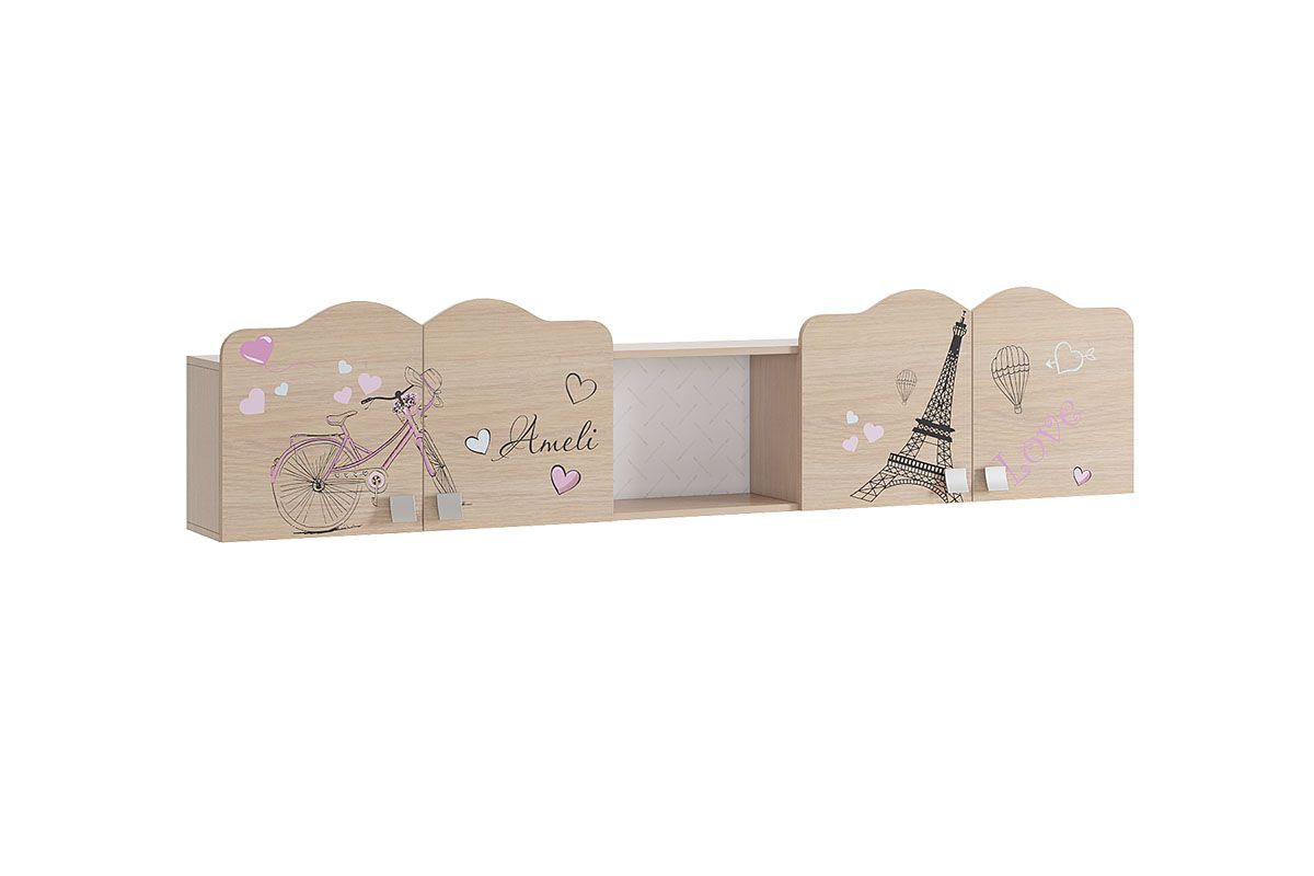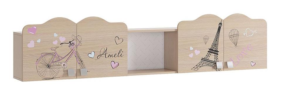 Романтичная навесная полка «Амели» – обрадует каждую девочку. В закрытые шкафы и открытую нишу поместятся все учебники книги и сувениры. Элегантный принтерный рисунок на фасадах выдержан в общем стилистическом решении. Рисунок устойчив к истиранию и ультрафиолету. Детская «Амели»- все, что нужно истинной леди!