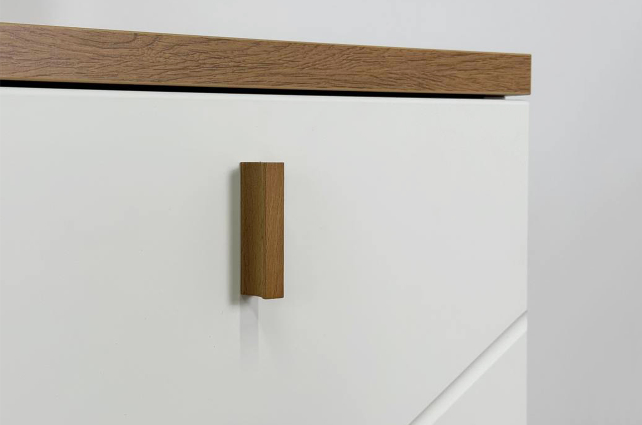 Комод 3 Хюгге белое дерево/дуб крафт золотой/белый матовый