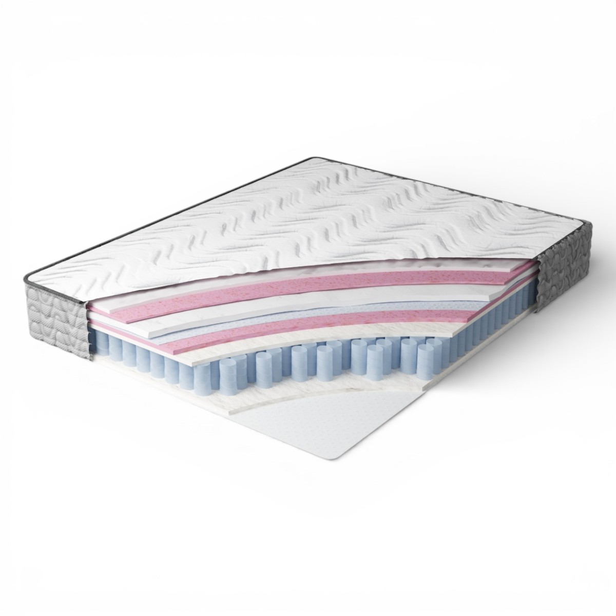 • Нетканый материал выполняет защитную и укрепляющую функцию: он фиксирует внутренние слои, продлевает срок службы матраса и оберегает мягкие верхние материалы от износа.