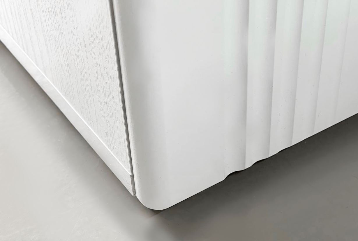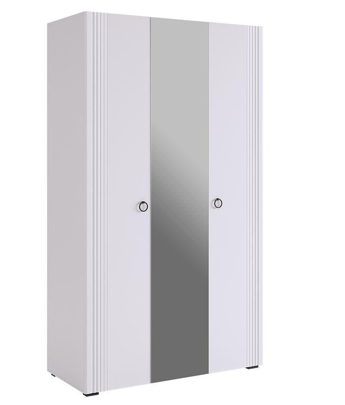 —Ева Шкаф 3 дв Фасады 2 гл + 1зеркало/105.02/Белое дерево/Белый матовый