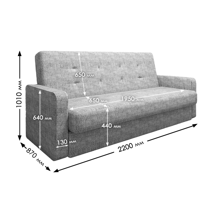 • Общие габариты дивана в разложенном виде (ШхД): 101 х 220 см.