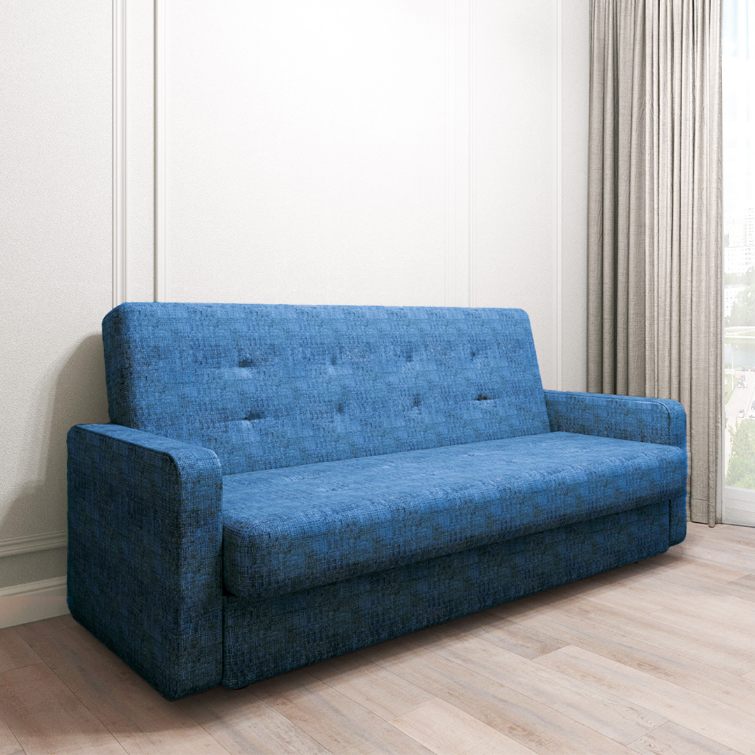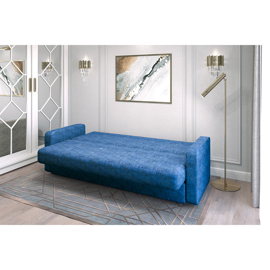 Прямой диван "Лидер 3" с подлокотниками - идеальное сочетание компактности и комфорта. Его простой силуэт и минималистичный дизайн позволяют легко вписать его в любой современный интерьер. Округлые подлокотники обеспечивают дополнительный уют и удобство во время отдыха. Благодаря надежному раскладному механизму диван легко трансформируется в просторное двуспальное место, что обеспечит качественный сон. Мягкая обивка дивана приятна на ощупь и легко очищается от загрязнений. Велюровый материал добавляет изысканности интерьеру комнаты и делает его более уютным. А наличие бельевого короба в основании позволит удобно хранить постельные принадлежности.