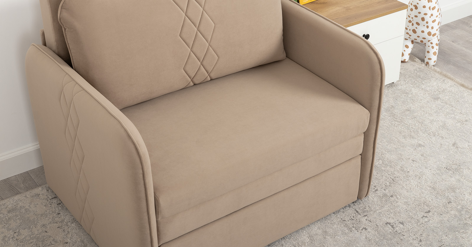 Компактный диван "Вивальди" – стильное решение для детской или гостиной. Этот диван, несмотря на свои скромные габариты, легко превращается в удобное спальное место для детей и подростков. Лаконичный дизайн с декоративной стежкой подчеркивает роскошную фактуру велюра, а компактные размеры позволяют разместить его даже в небольшом пространстве.