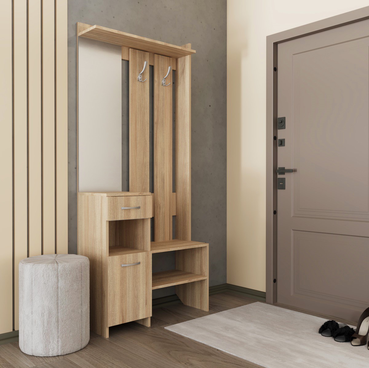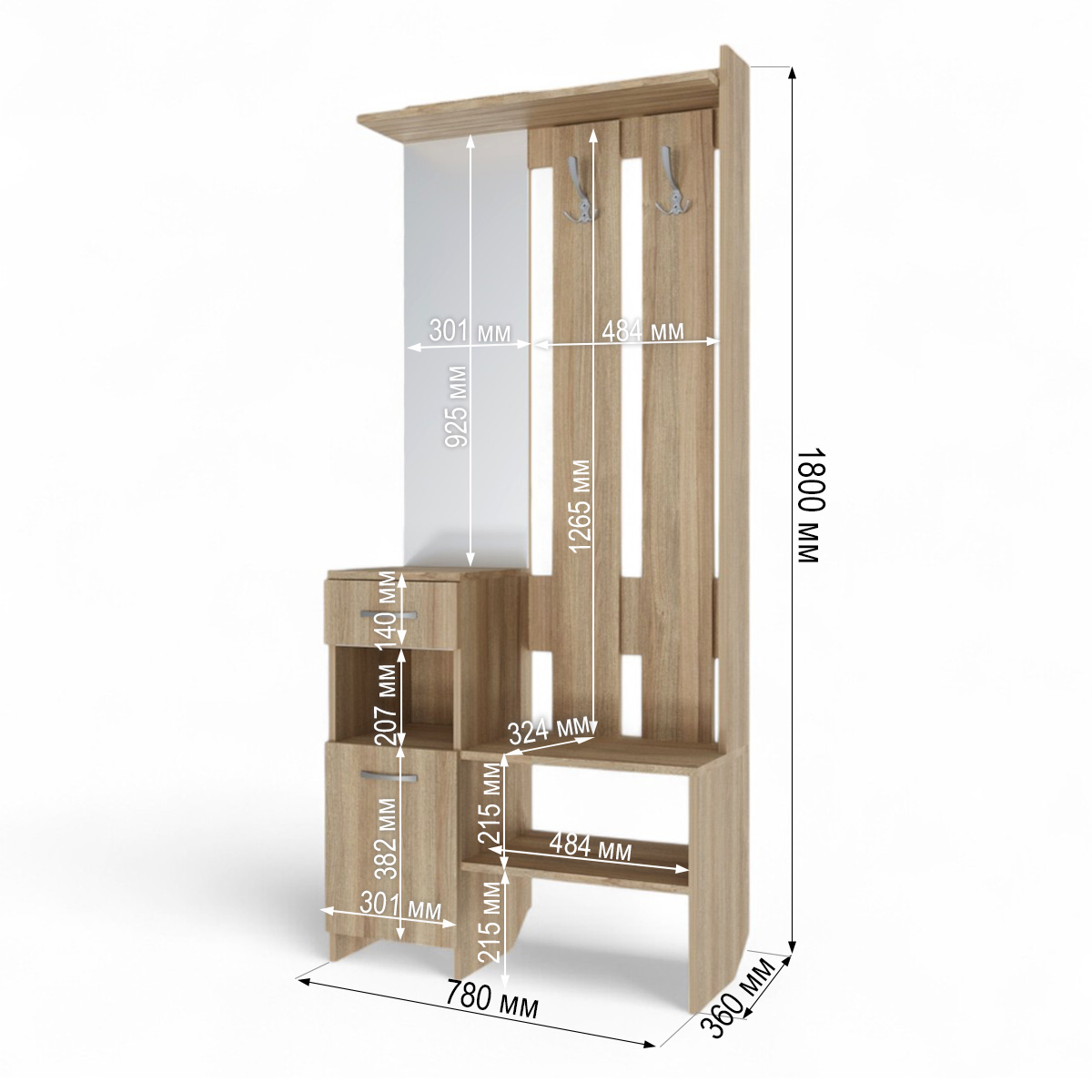 Функциональная и стильная прихожая БН 196 - 05 в цвете Дуб Сонома станет идеальным решением для организации пространства в вашем доме. Этот комплект создан, чтобы сочетать удобство и практичность.