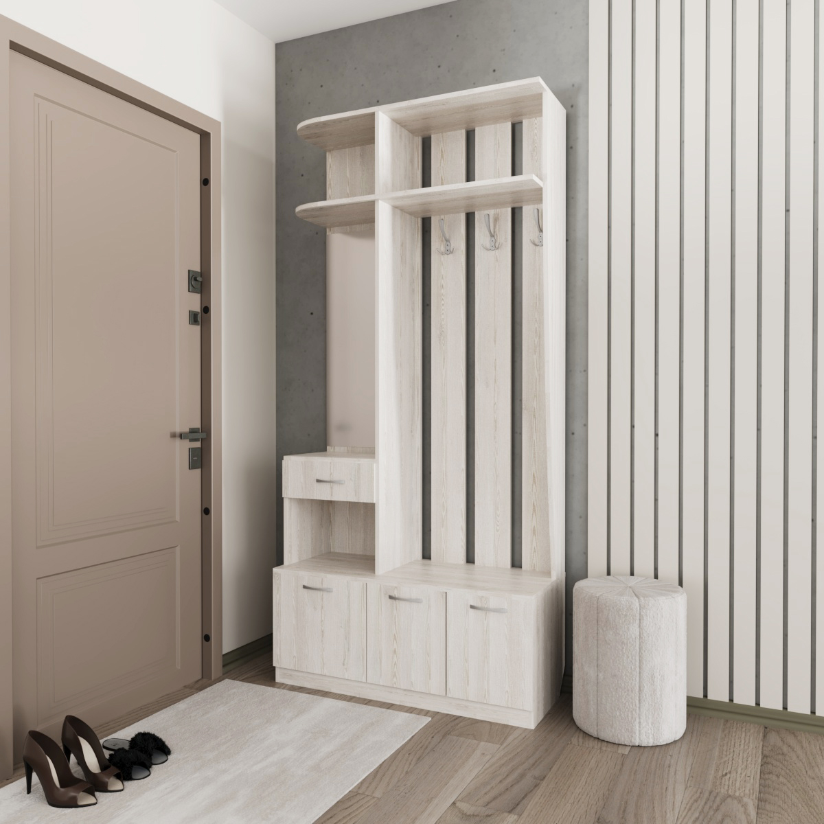 ✓ Выдвижной ящик: Практичный выдвижной ящик позволит удобно хранить мелкие предметы и аксессуары, поддерживая порядок в прихожей.