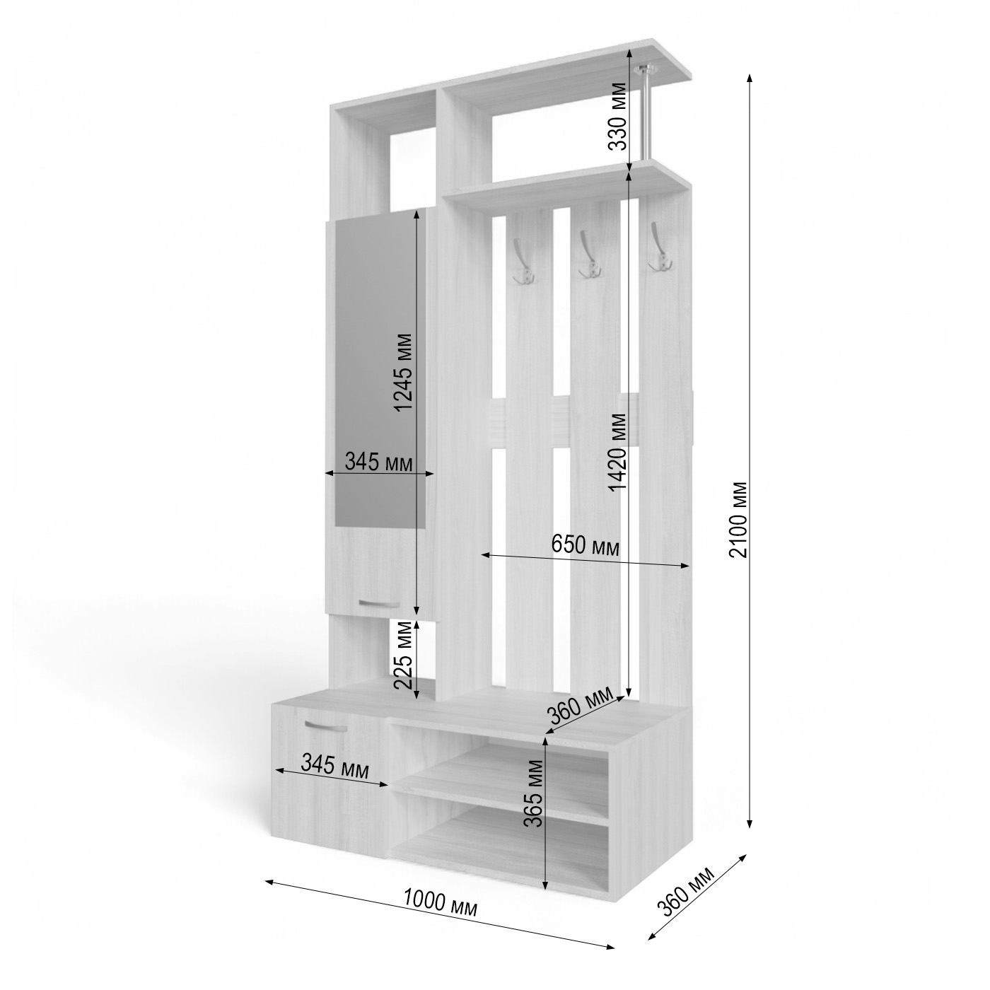 Организуйте пространство у входа с помощью практичной прихожей "БН-208". Модель предлагает полный набор для хранения, сочетая закрытые и открытые решения.